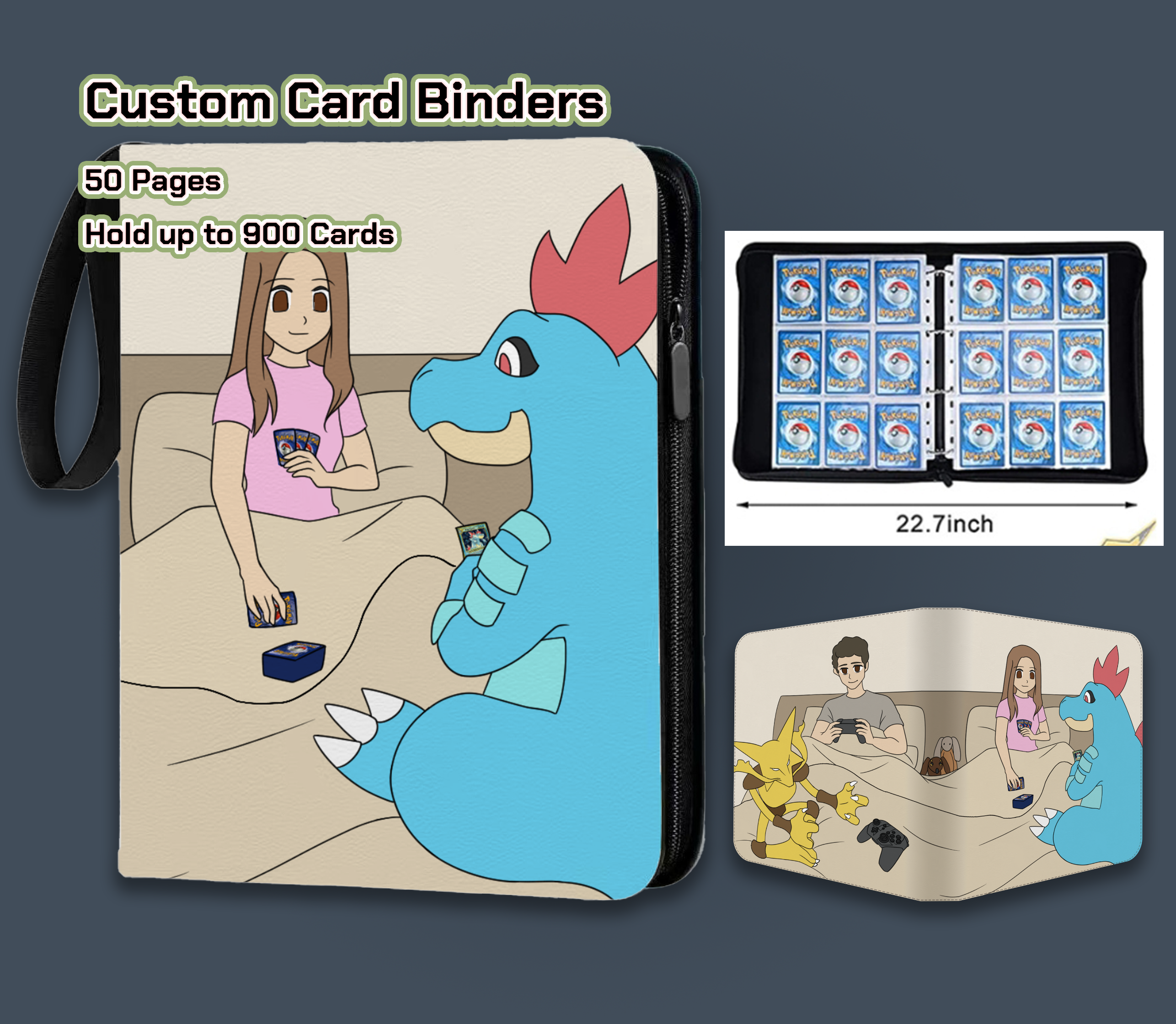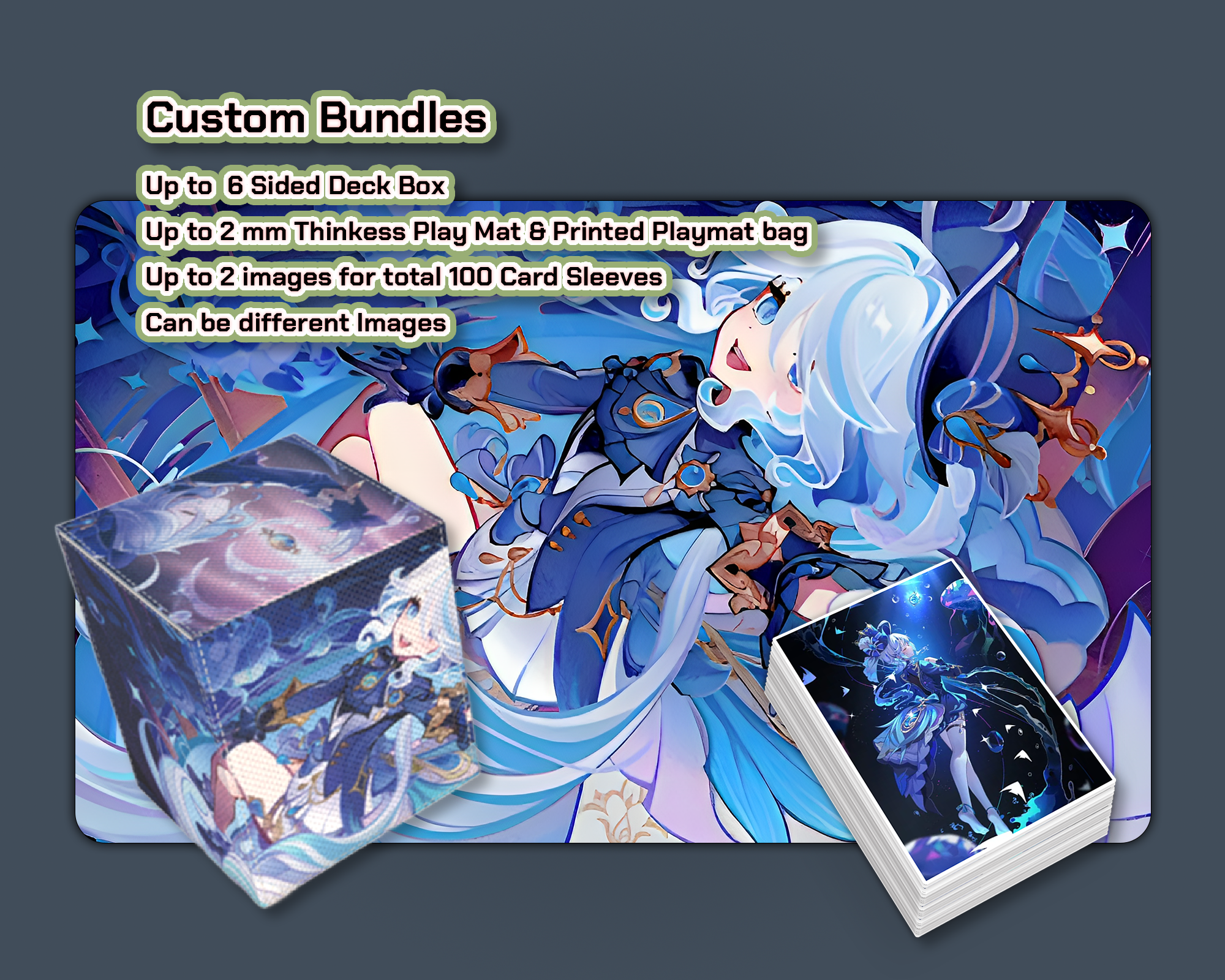 Our services include the customization of Card Sleeves, Binders, Deck boxes, and Playmats for a variety of popular franchises TCG such for Pokémon Card Games, One Piece Card Games, Naruto Card Games, Magic: The Gathering Card Games and Lorcana Card Games.